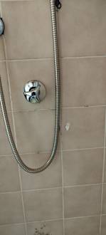 Die Dusche mit Bohrlöchern und Silikonresten
