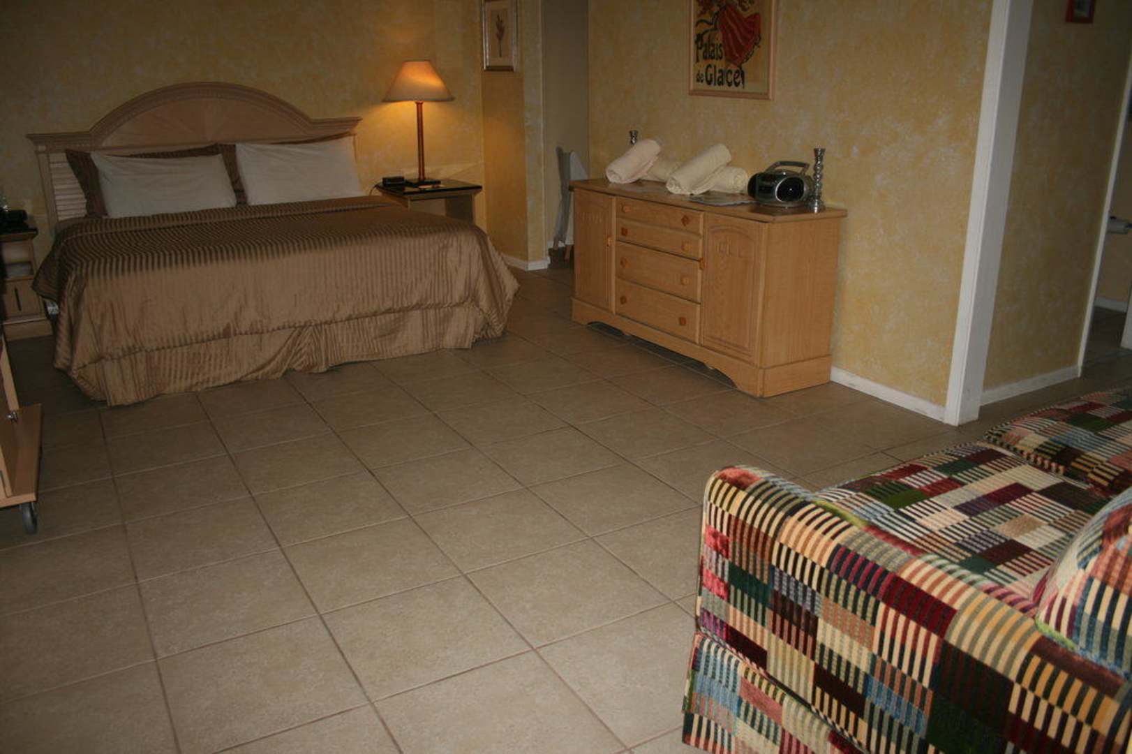 Zimmer 104 befindet sich im nördlichen Gebäude, in der Nähe der Rezeption