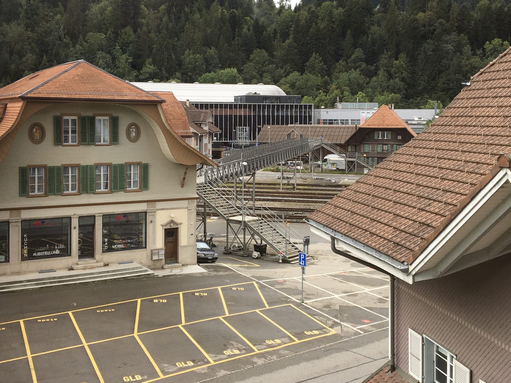 Passerelle über die Bahngeleise, Blick zur Eishalle