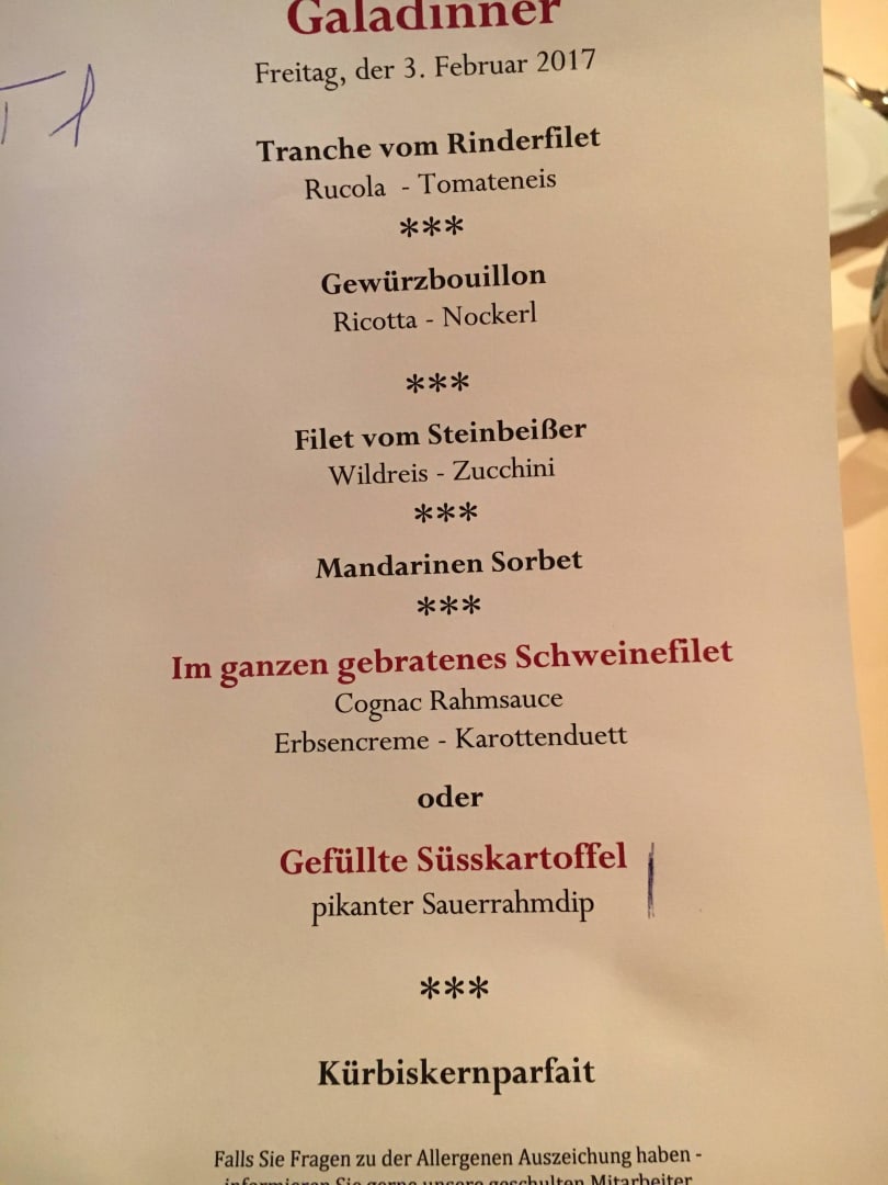 Galadinner Speisekarte