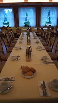 Der Frühstückstisch für unsere Gruppe.