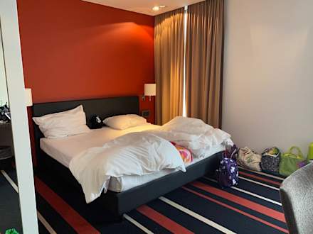 Licht beliebig dimmbar, Blick zum Bett. Angenehm geräumiges Zimmer.