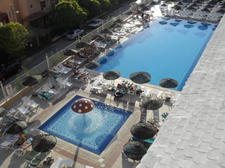 vanaf de kamer het zwembad in zijn geheel gezien