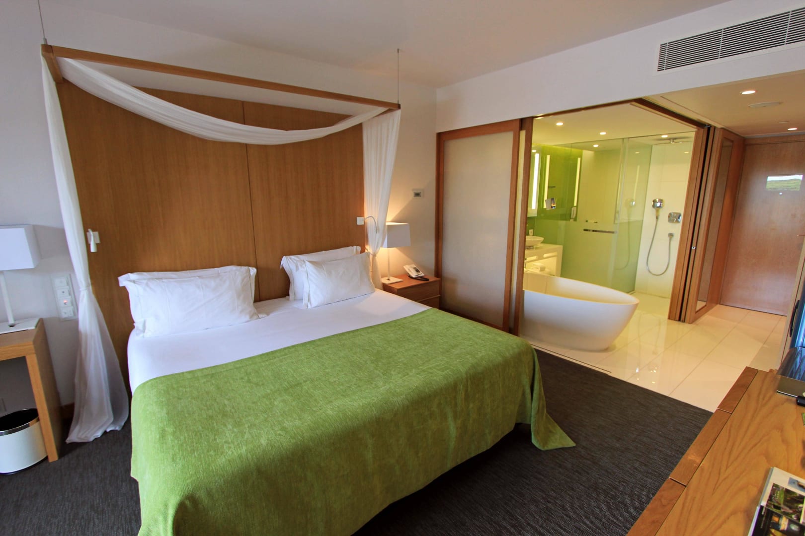 Bequemes Bett und Bad mit Schiebetüren
