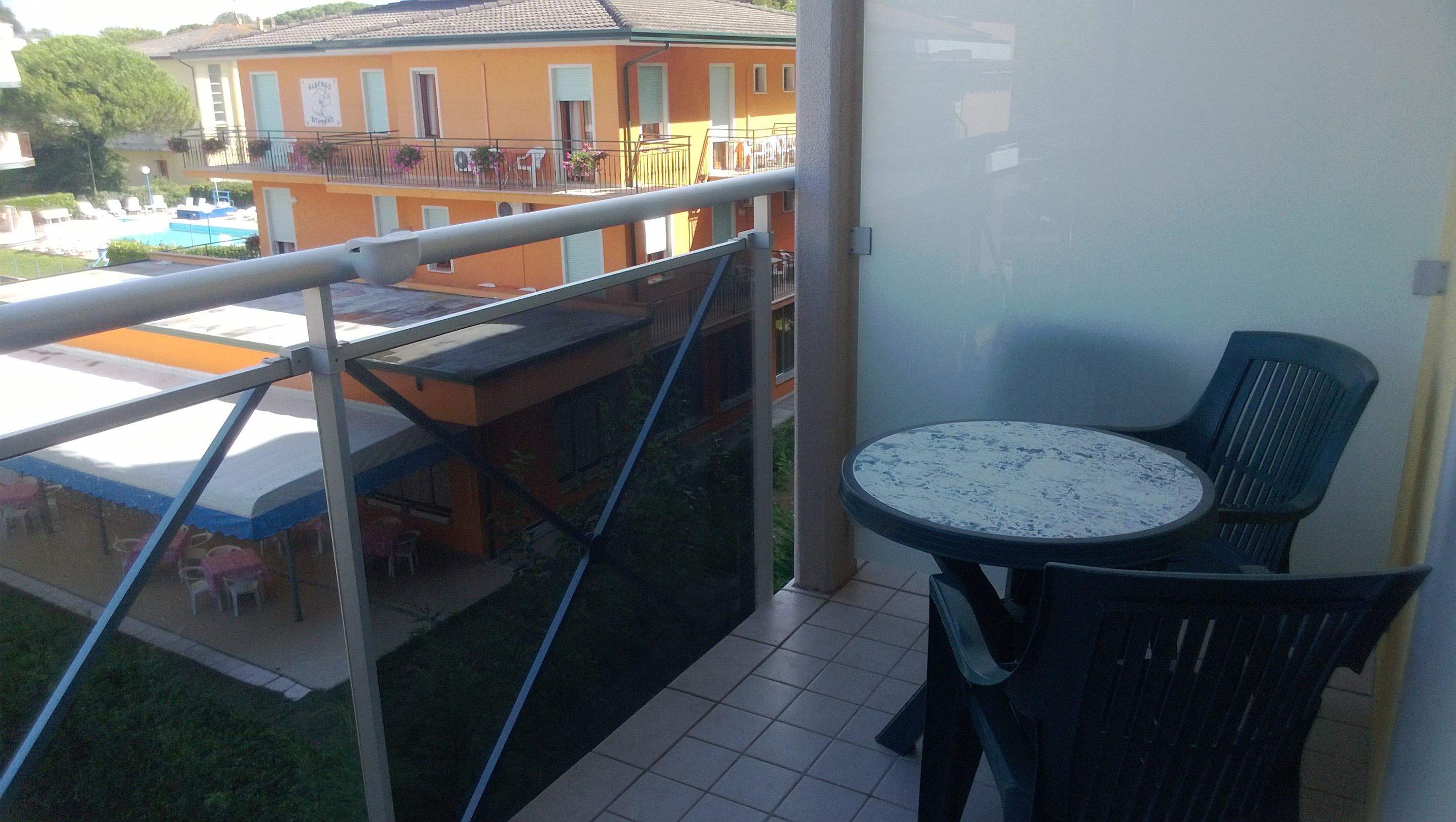 Der Balkon mit Tisch und 2 Stühlen