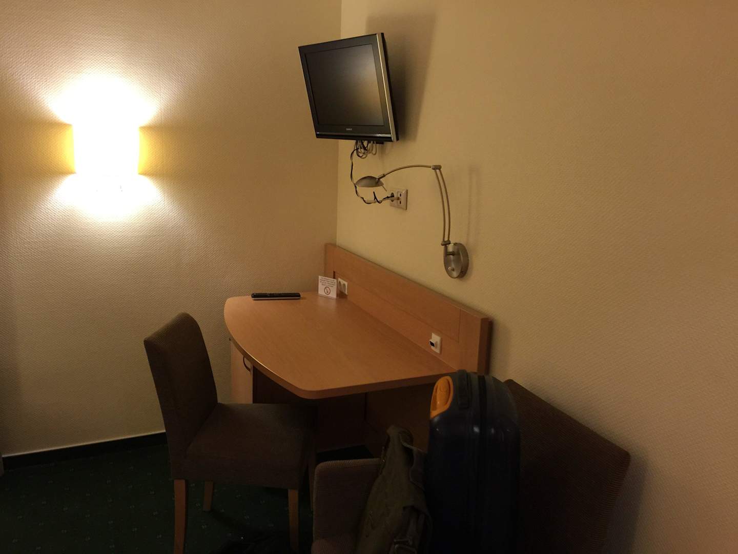 Schreibtisch, TV, Kühlschrank