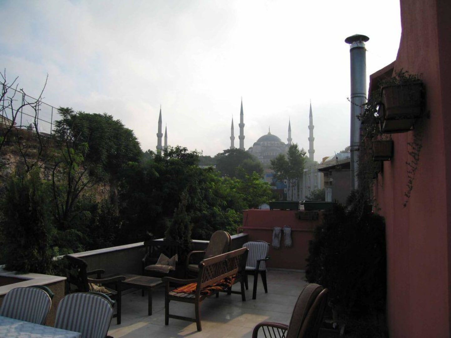 Hotel Erguvan, DachterrasseFrühstücksterrasse des Hotels Erguvan mit Blick auf die Blaue Moschee