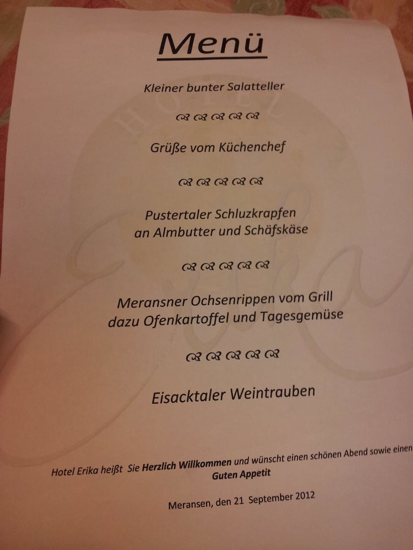 Menuekarte etwas für den Gaumen