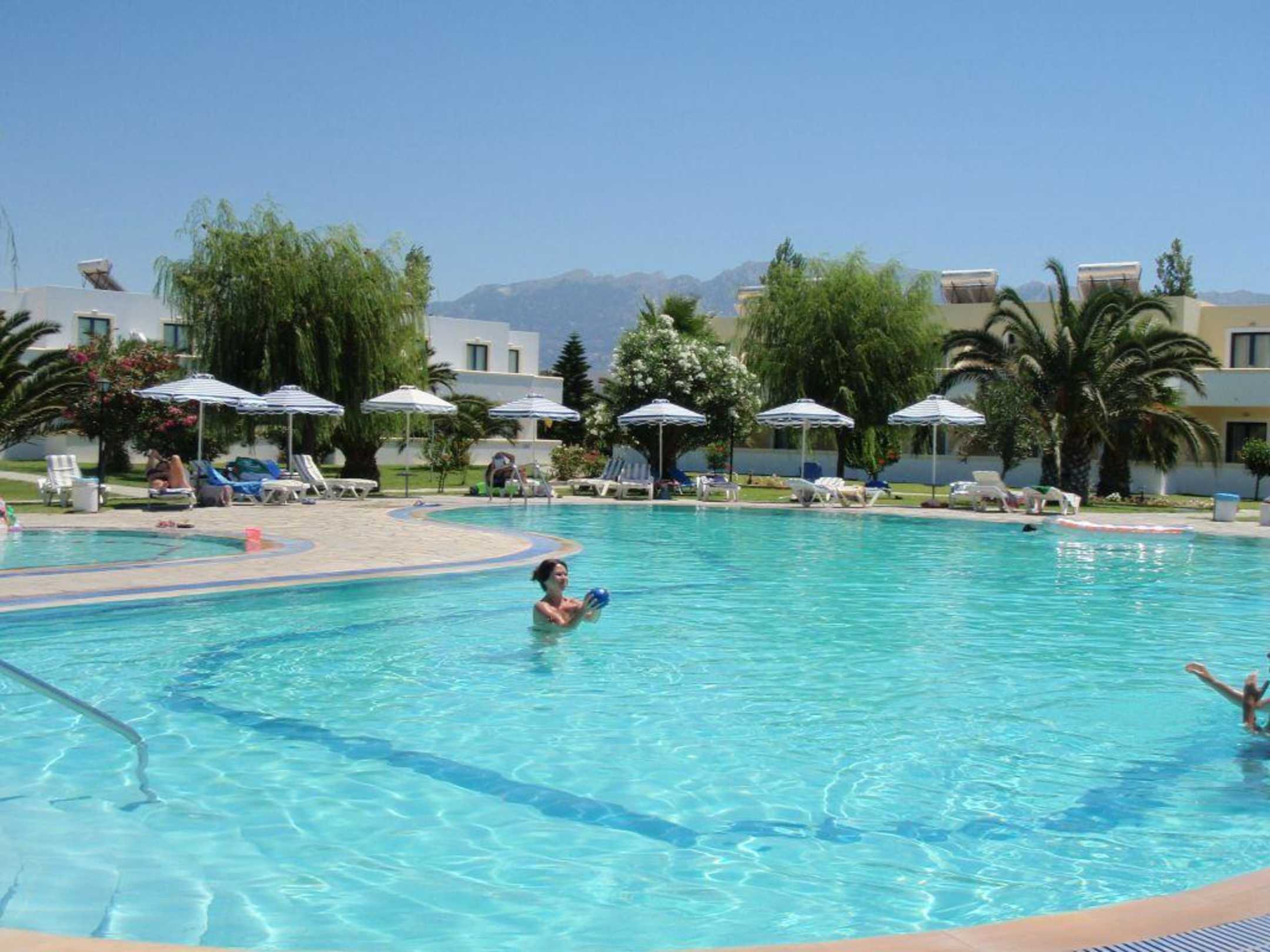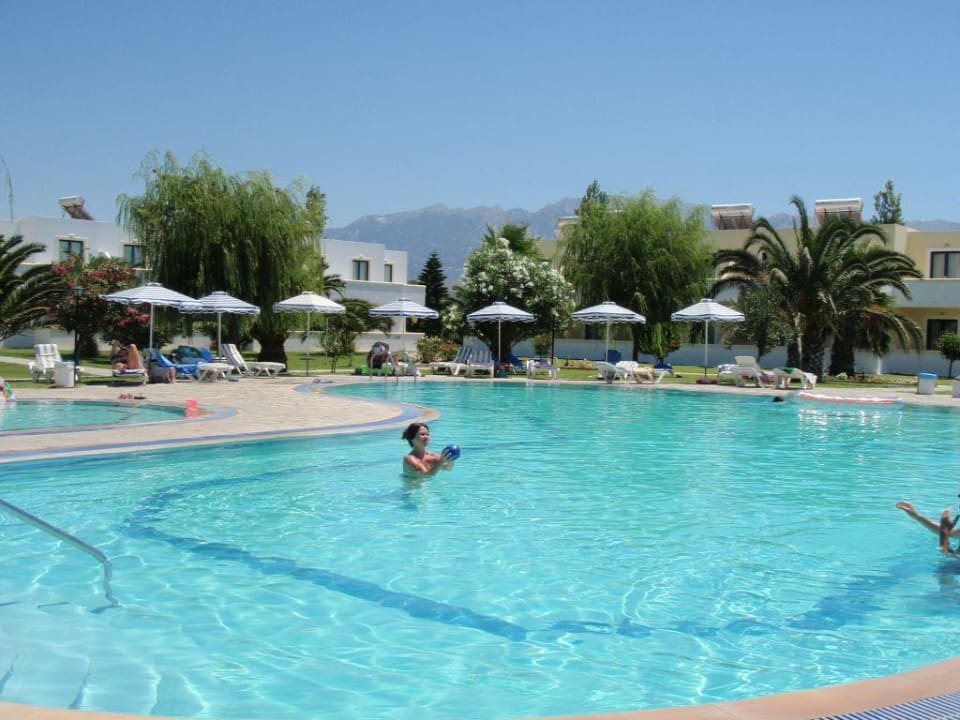 Der Pool war okay, ist aber nicht so groß wie er hier aussieht. Liegen konnte man sich tägsüber vom Hotelgelände zusammensuchen, da sie nie an den Pool abends zurückgestellt wurden.
