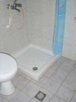 Das tägliche DuschvergnügenDer Abfluss in der Mitte des Bades setzt im Nu das ganze Bad unter Wasser