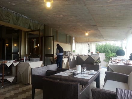 Frühstücksbüffet mit Sitzmöglichkeiten im Freien