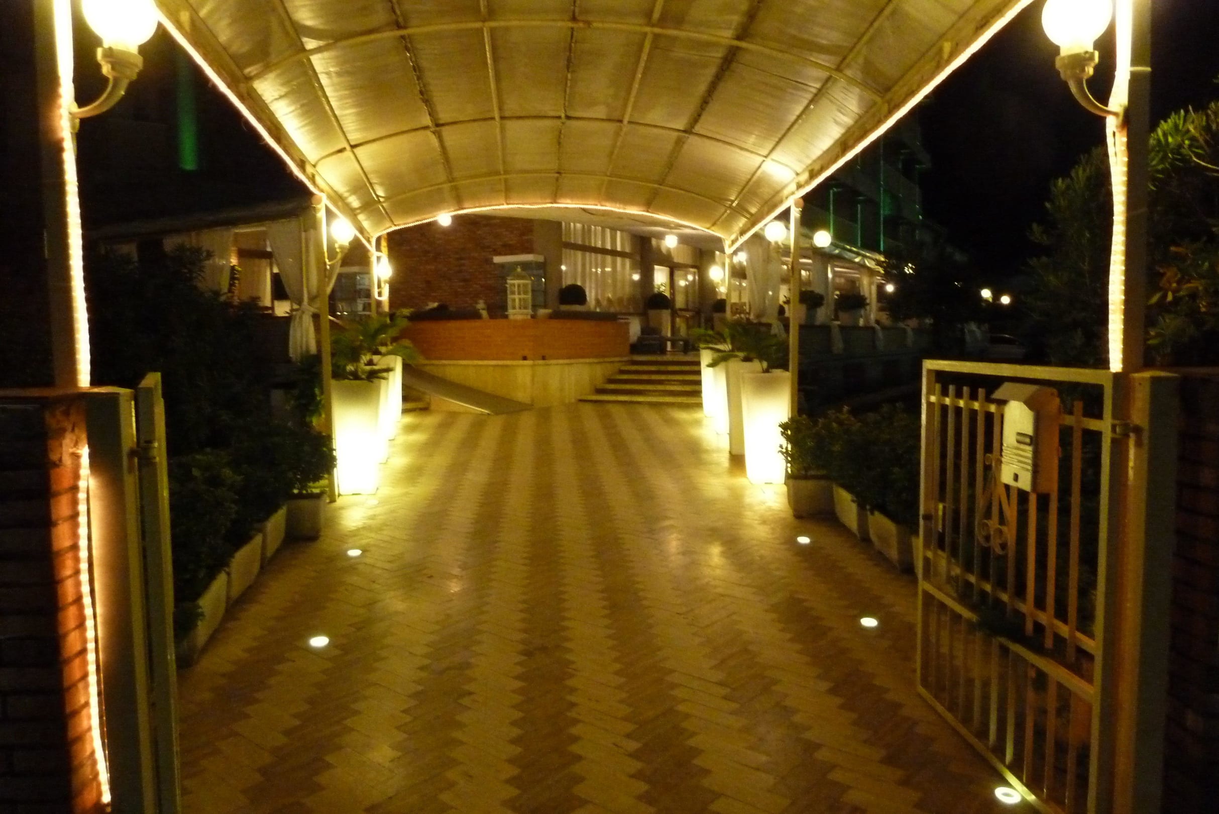 Überdachter Eingang zum Hotel