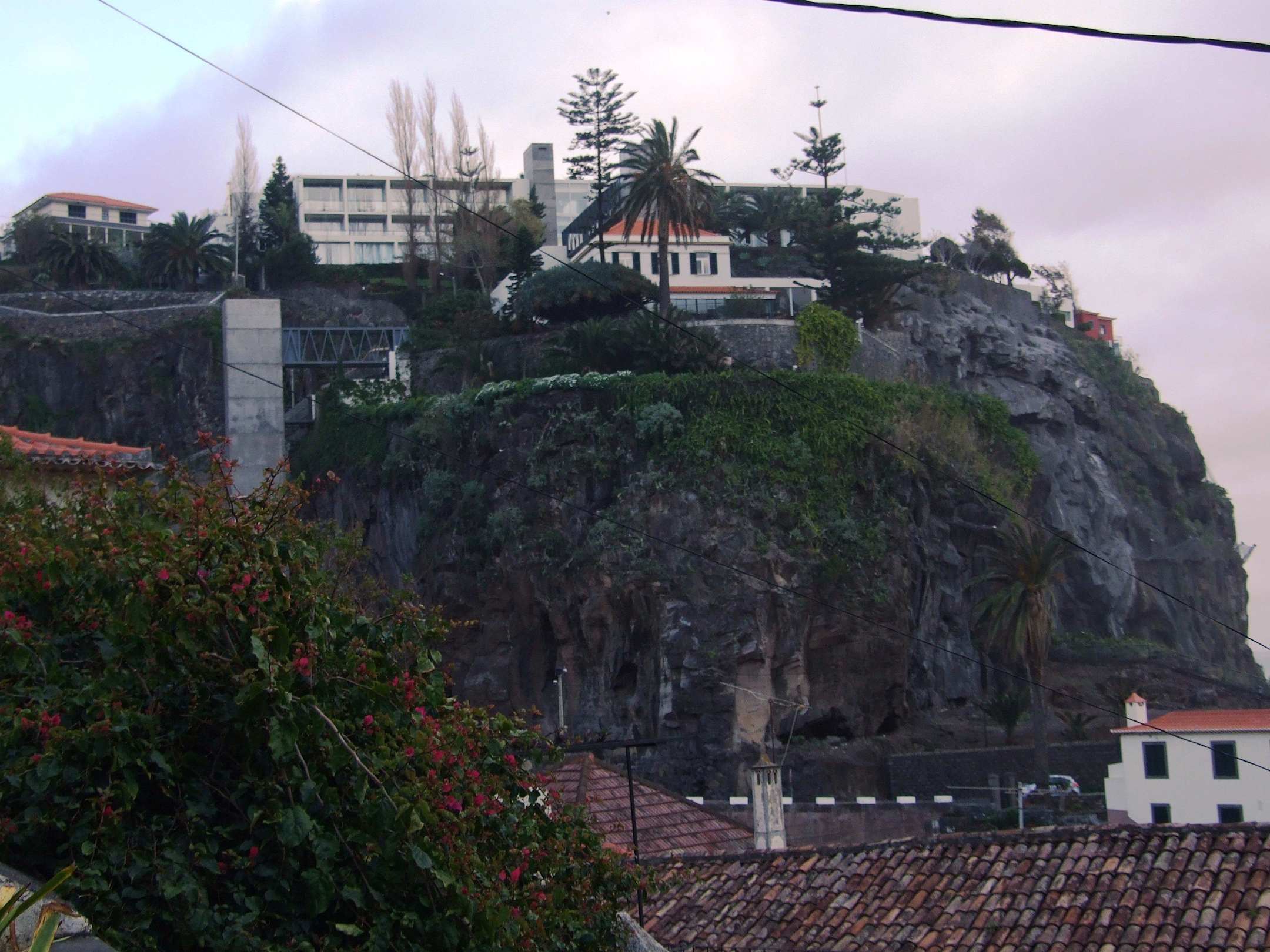 Blick aus dem Ort Ponta do Sol auf die Hotelanlage auf dem felsen
