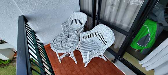 Die Möbel auf dem Balkon