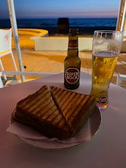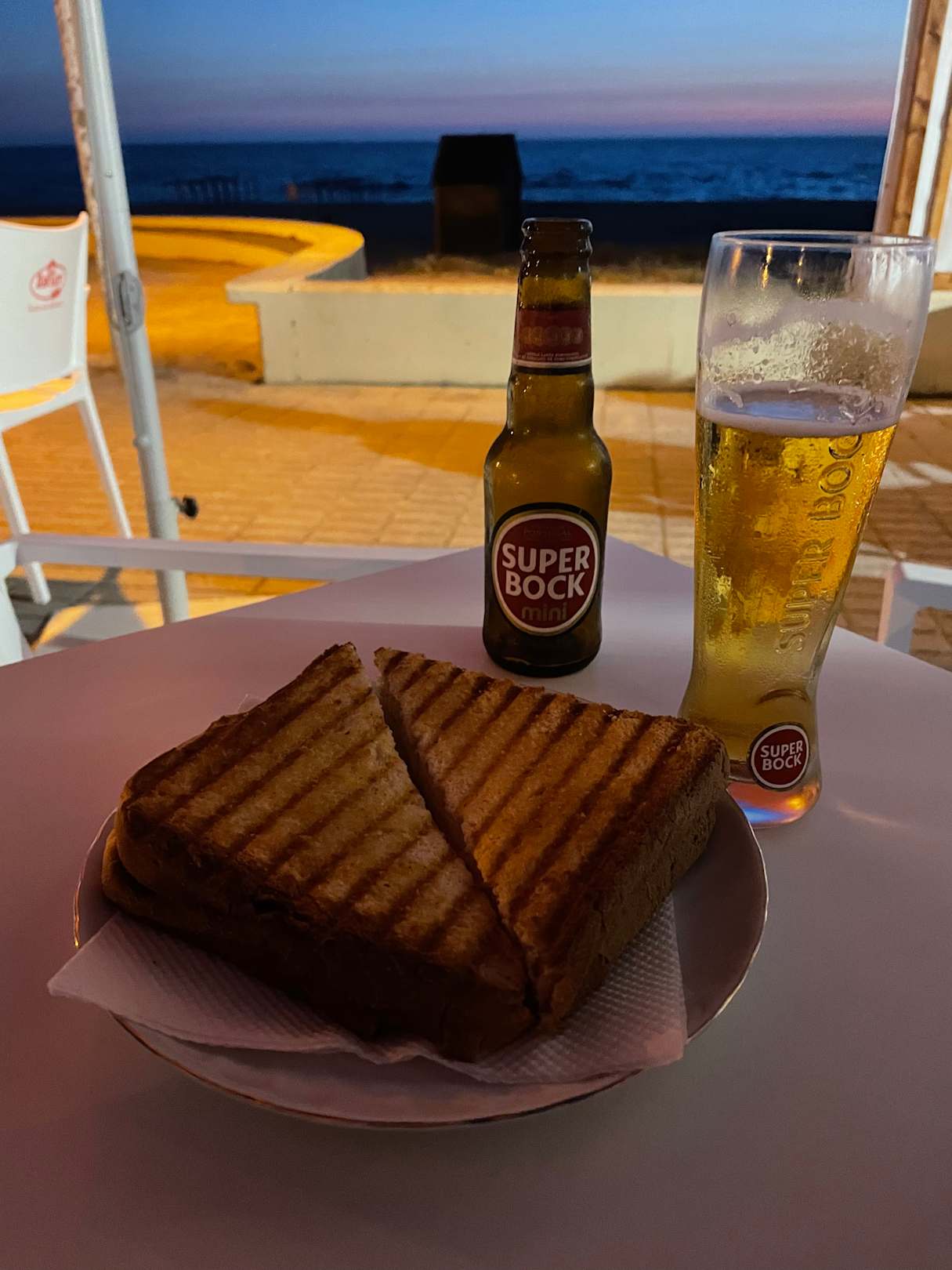 „Abendessen“ mit Meerblick am Kiosk (nicht zum Hotel gehörend) - für Fleischesser gibts mehr Auswahl