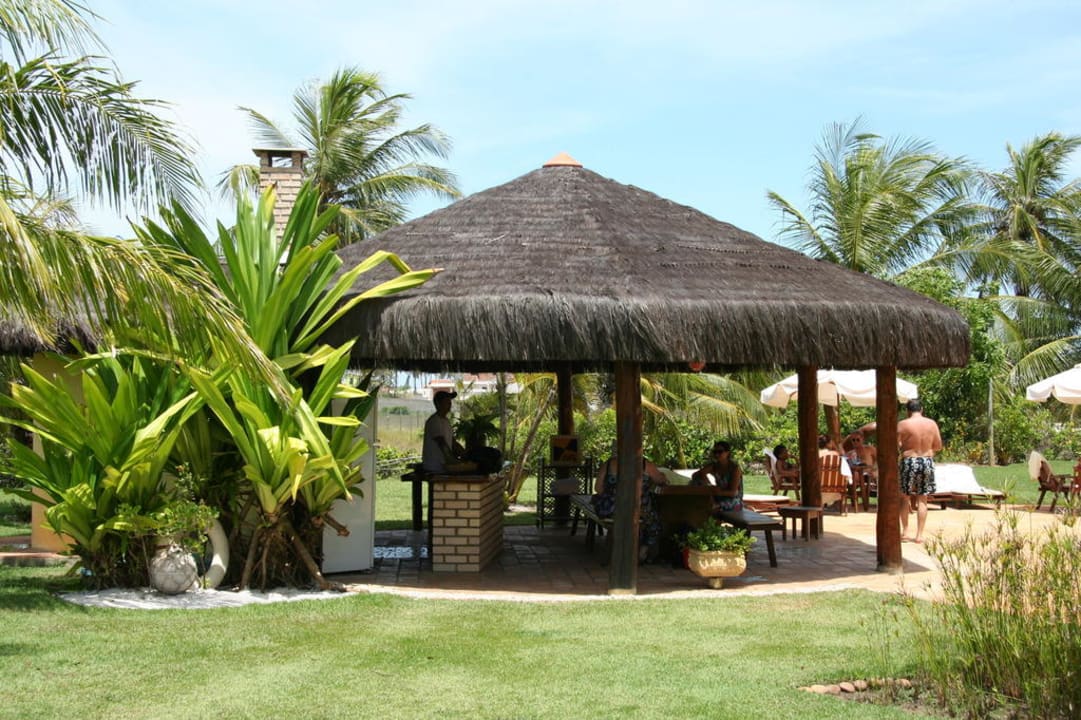 Überdachte Bar mit langer Tafel