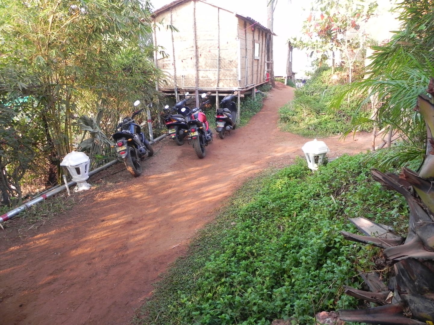 Motorradparkplatz vor unserem Bungalow gab uns den Rest. Laut und stinkend.