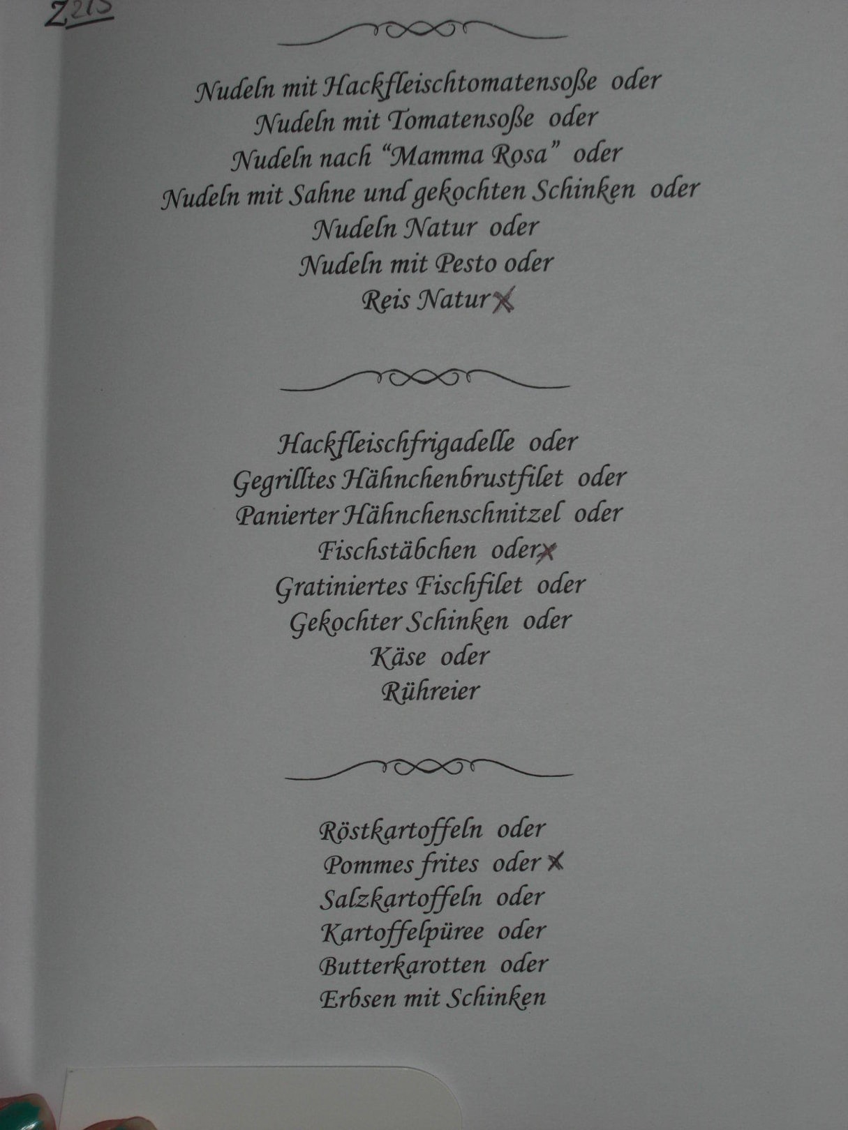 Kindermenü-Karte