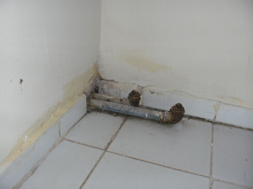 Verrostete und versiffte Rohre ragten in der Zimmerecke aus der Wand heraus.