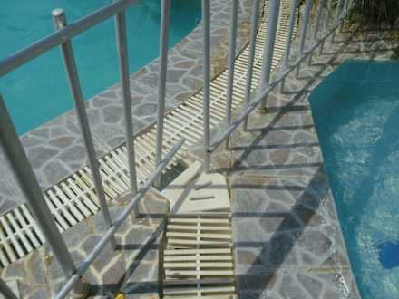 Die Absperrung vom Kinderpool zum großen Pool war eine wacklige Steckkonstruktion. Da war noch nicht mal anlehnen möglich, sonst ist die Absperrung kaputt gegangen.
