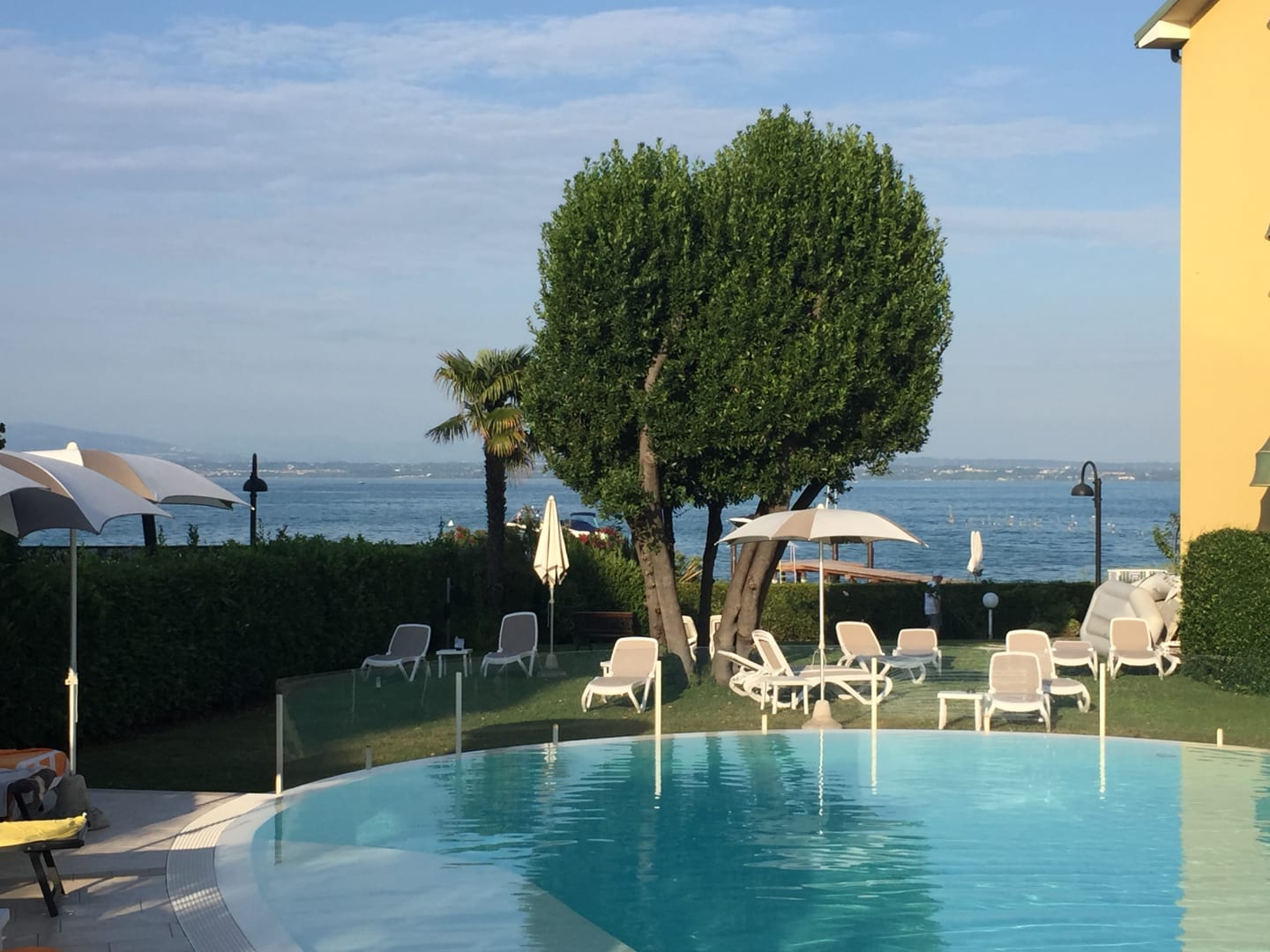 Vom Pool aus kann man auf den Gardasee blicken.