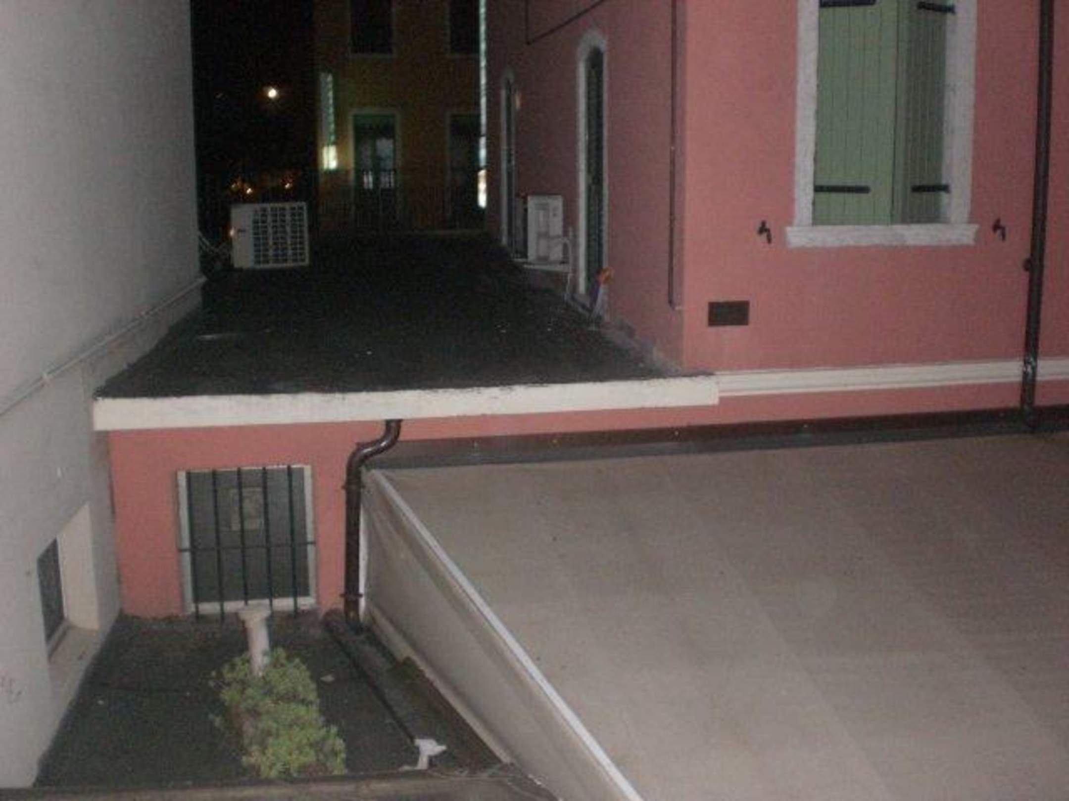Blick aus Zimmer Nr 15Sie sehen das rosafarbende Haus: das benachbarte Restaurant und unter der Plane sitzen die Gäste