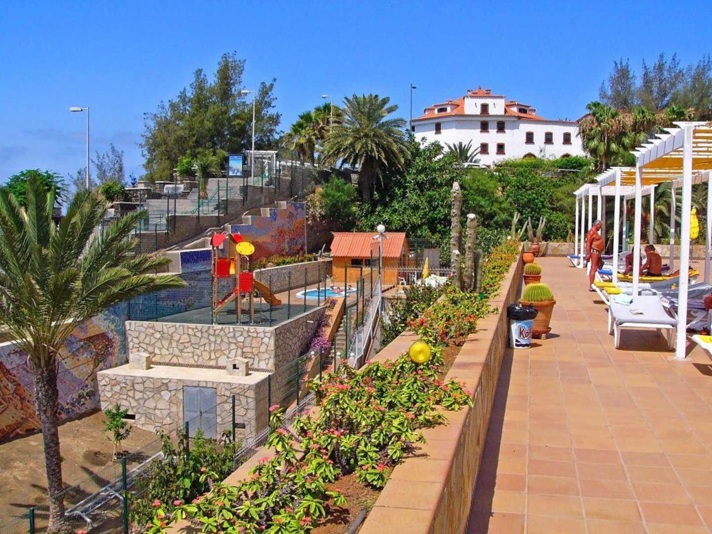Die obere Liege-Terrasse und daneben Kinderspielplatz
