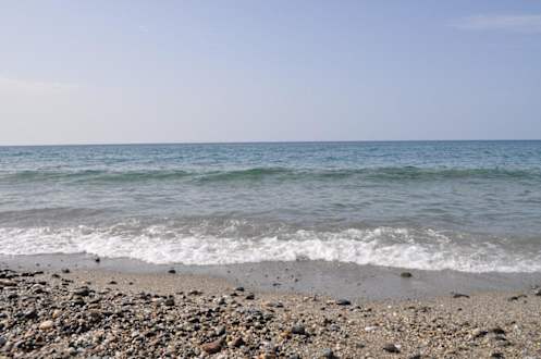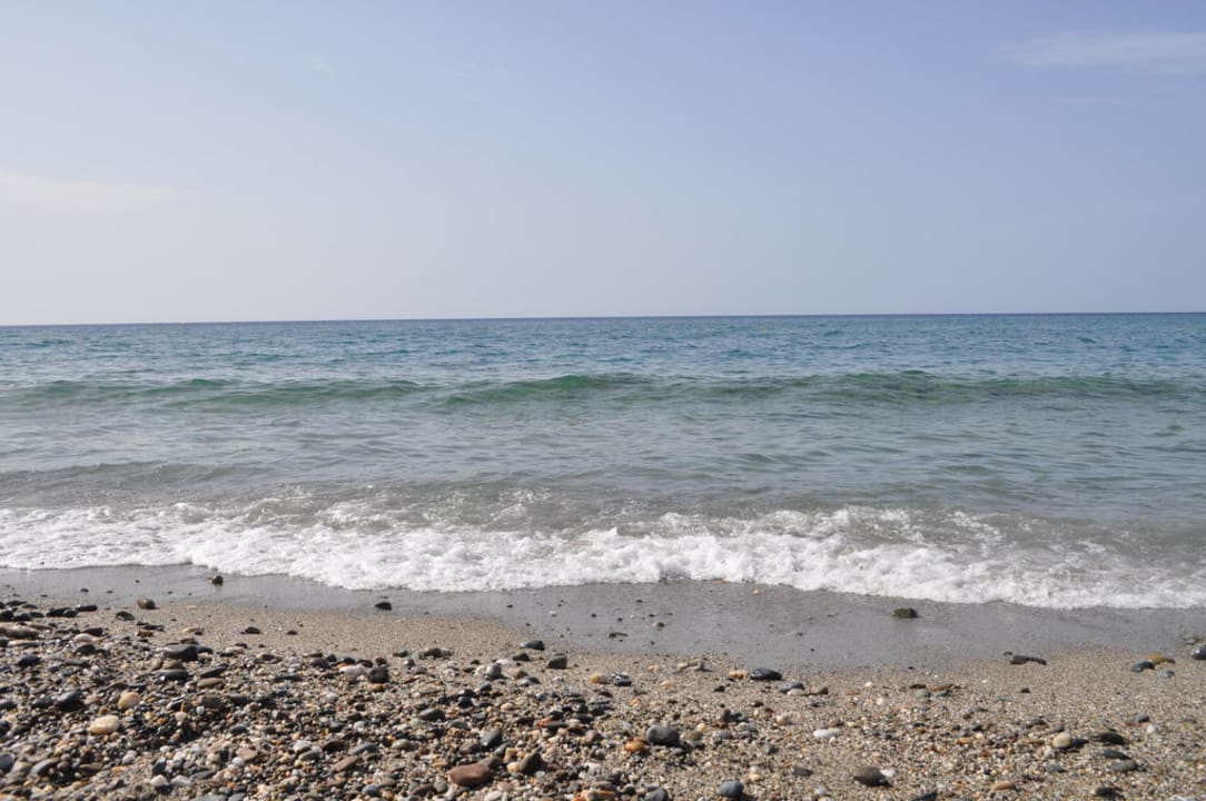 Im Wasser hatte es sehr viele Steinplatten. Die Wassertemperatur war angenehm. Der Hotelstrand von Eva-Bay wurde nicht sauber gehalten. Wir fanden leere Flaschen sowie Babywindeln vor.