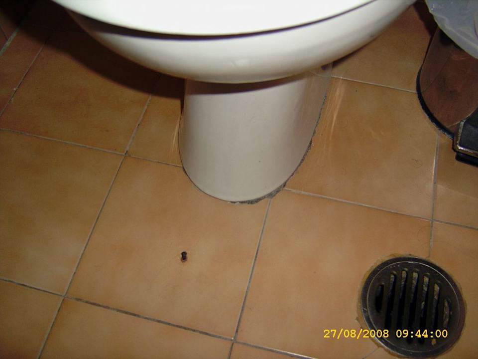 Um nicht mit der Badezimmer Tür gegen die Toilette zu schlagen gab es hier mal einen Türstoper. Also zimmlich eng das ganze.