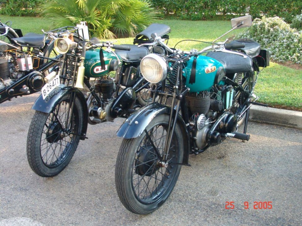 Das waren noch Zeiten!Spanien/Mallorca/Can Picafort/Hotel Iberostar Exagon Park// Alte Motorräder vor dem Hotel zur Abfahrt bereit.