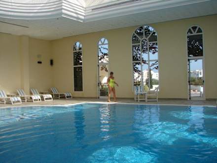 kryty basen w hotelu z podgrzewaną wodą, kiedy aura nie sprzyja to można mile spędzić czas tutaj