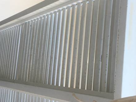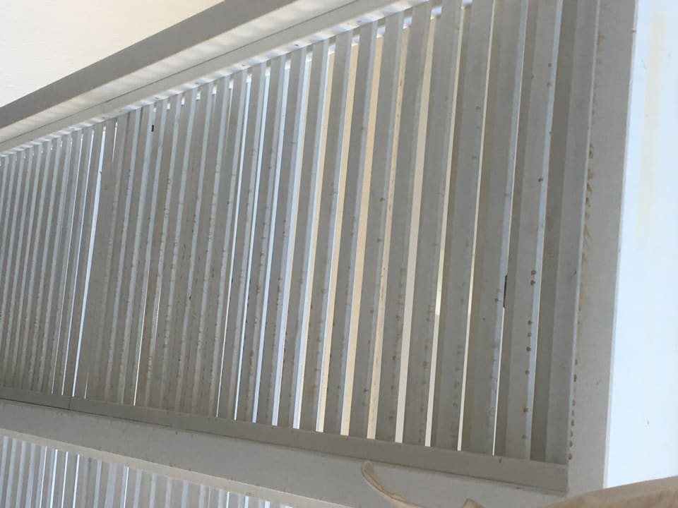 Sonnendach aus Holz über dem Barbereich am Pool. Leider fleckig und schmutzig.