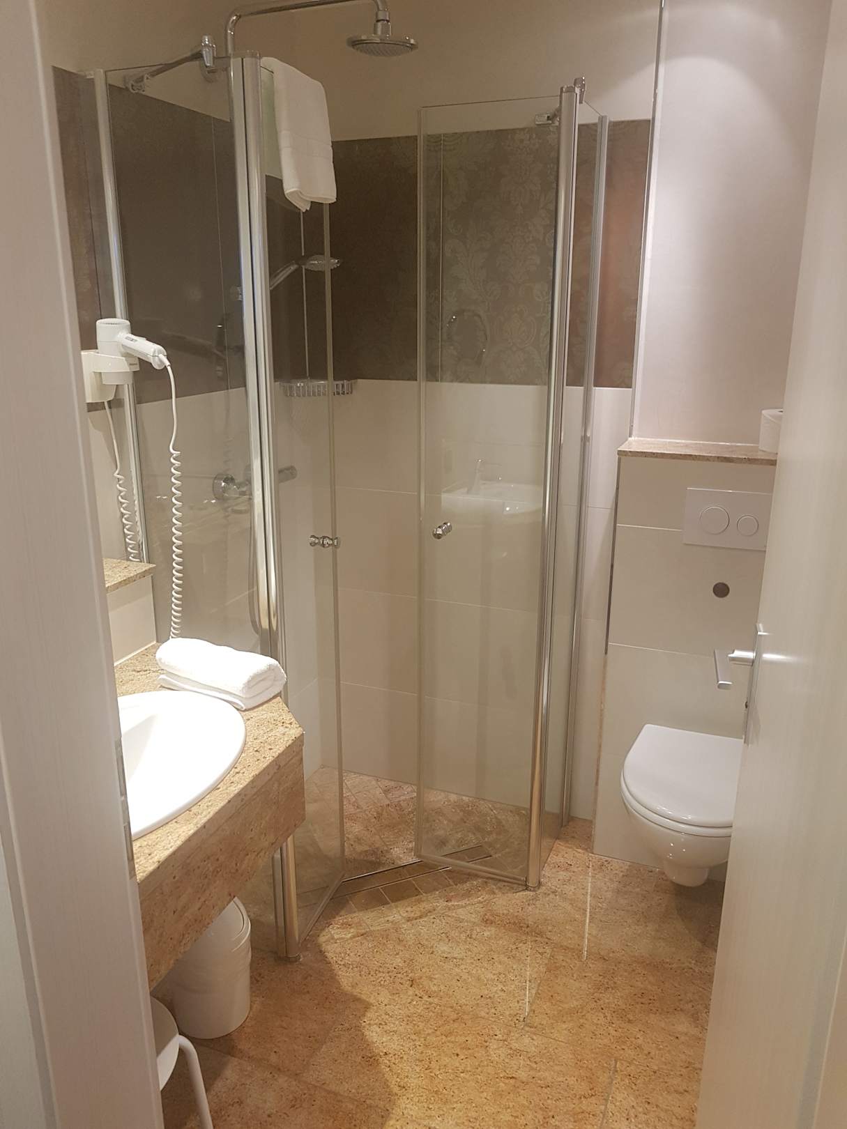 Badezimmer. Sauber! Duschkabine etwas eng.
