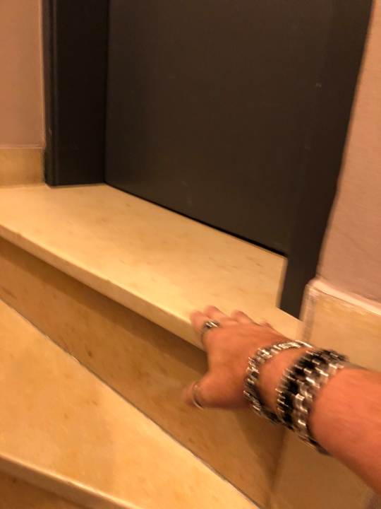 ZimmerWehe man steht da oben bei halb geöffneter Tür. Da sieht man mal wie steil die Treppe ist ich stehe aufrecht (1,9m) mit ausgestrecktem Arm.