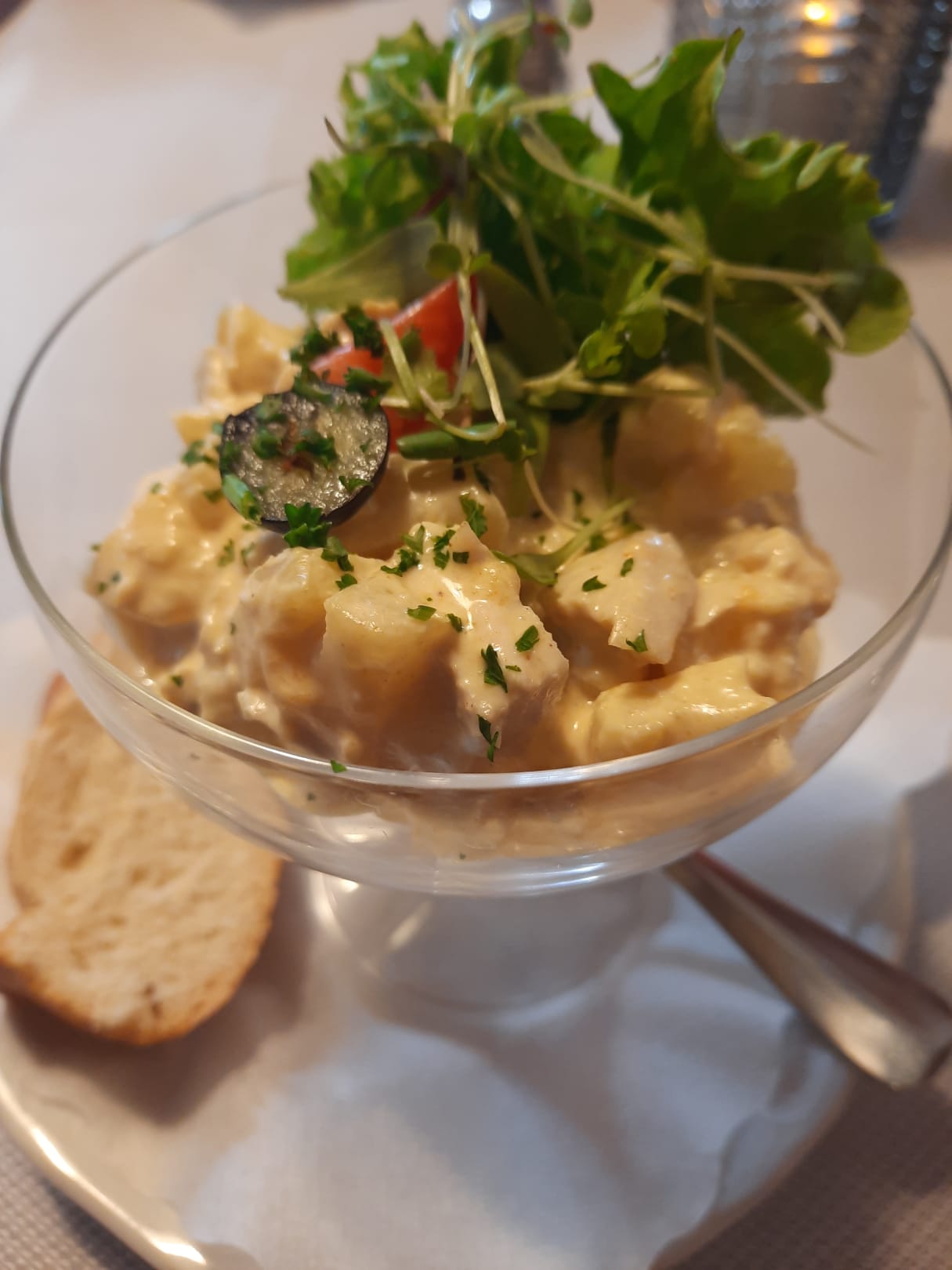 Ein Geflügelsalat als Vorspeise... geschmacklich hervorragend....