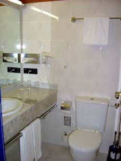 Bad im Zimmer 302 mit Badewanne/Dusche, Föhn, kein Kosmetikspiegel vorhanden!!