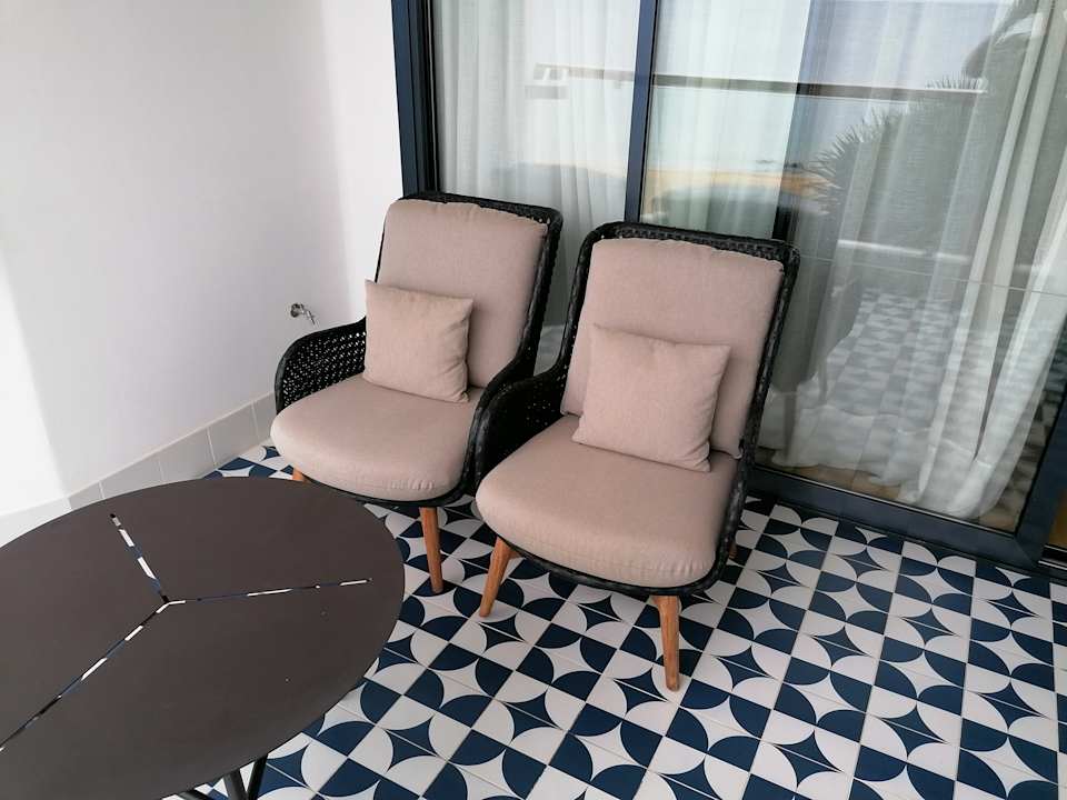 Balkon mit Sesseln und Tisch. Aussicht genießen!