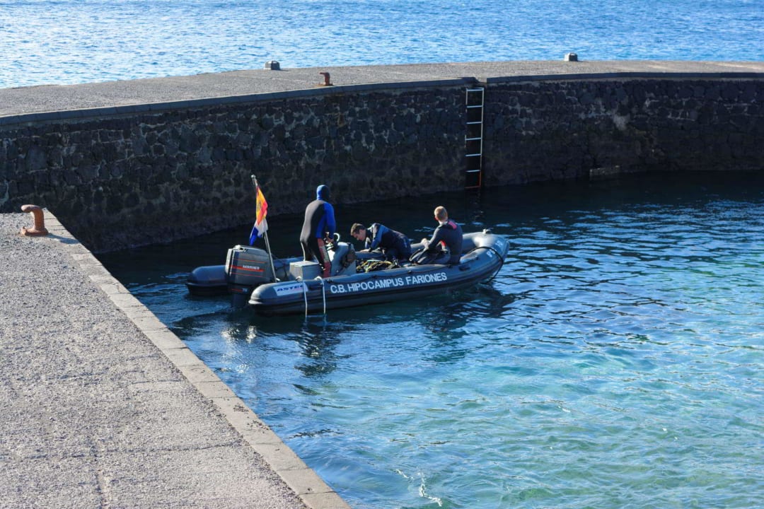 Bootsanleger mit Boot der Tauchschule