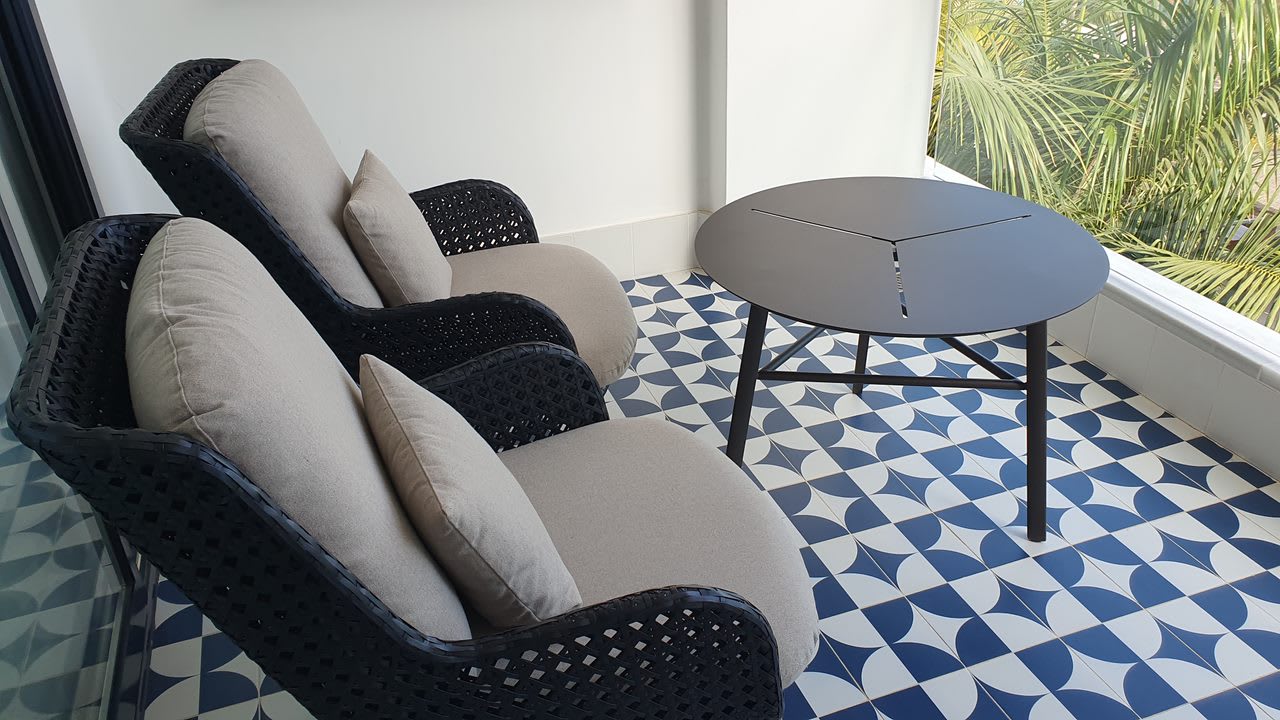 Balkon mit gemütlichen Sitzgelegenheiten