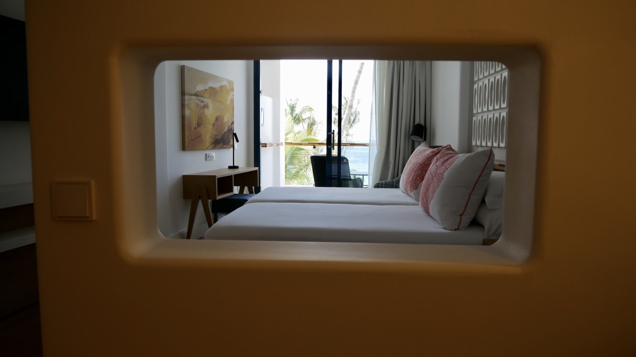 Blick vom Bad ins Zimmer