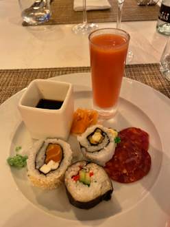 Einmal in der Woche gab es u.a.. Sushi als Vorspeise beim Buffet!