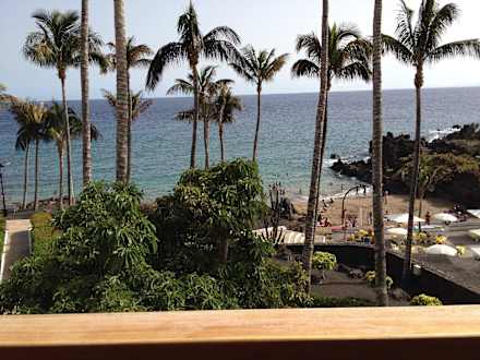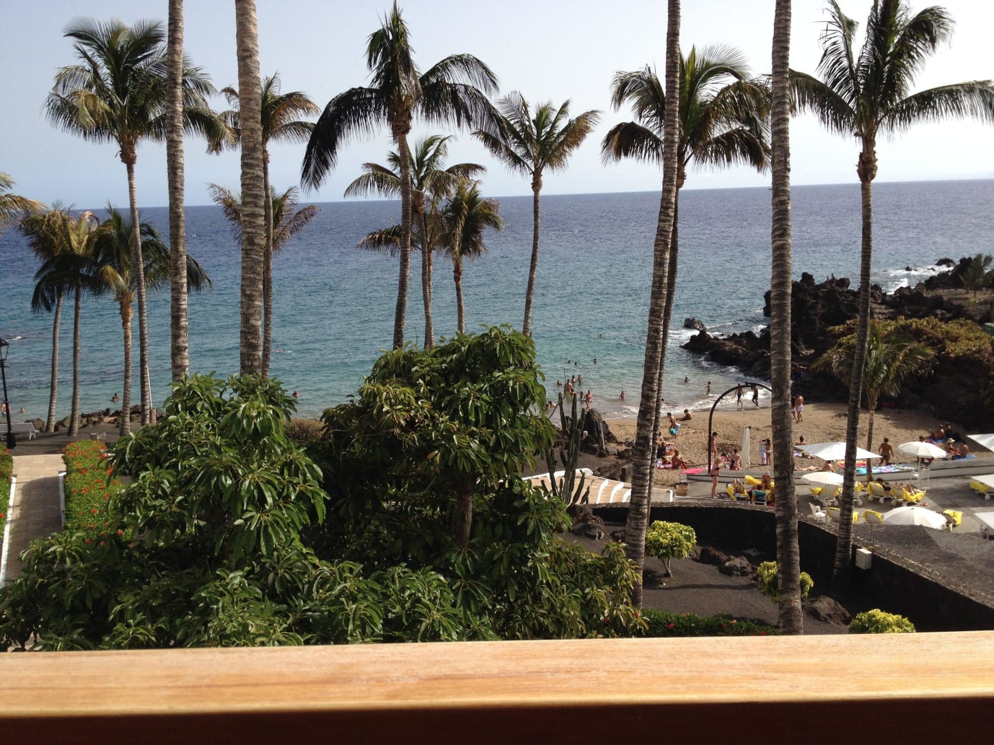 Ausblick aus dem Zimmer über Garten und Badebucht