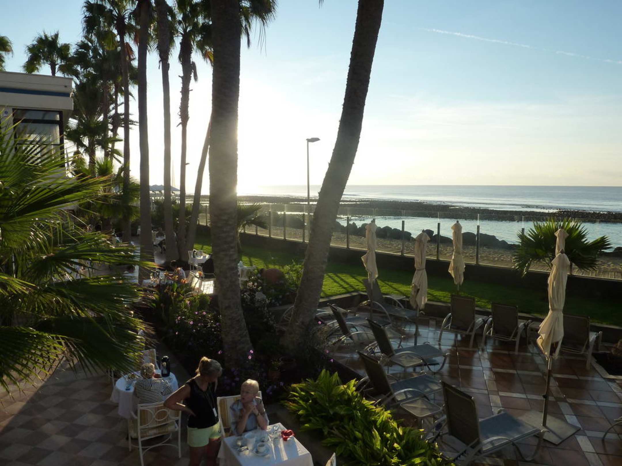 Frühstück unter PalmenBlick von der Frühstücksterrasse aufs Meer. Traumhaft!!!