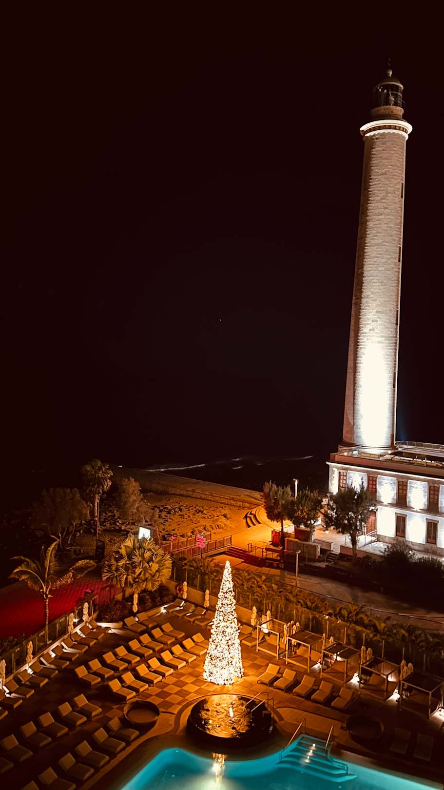 Pool und abendlicher Leuchtturm