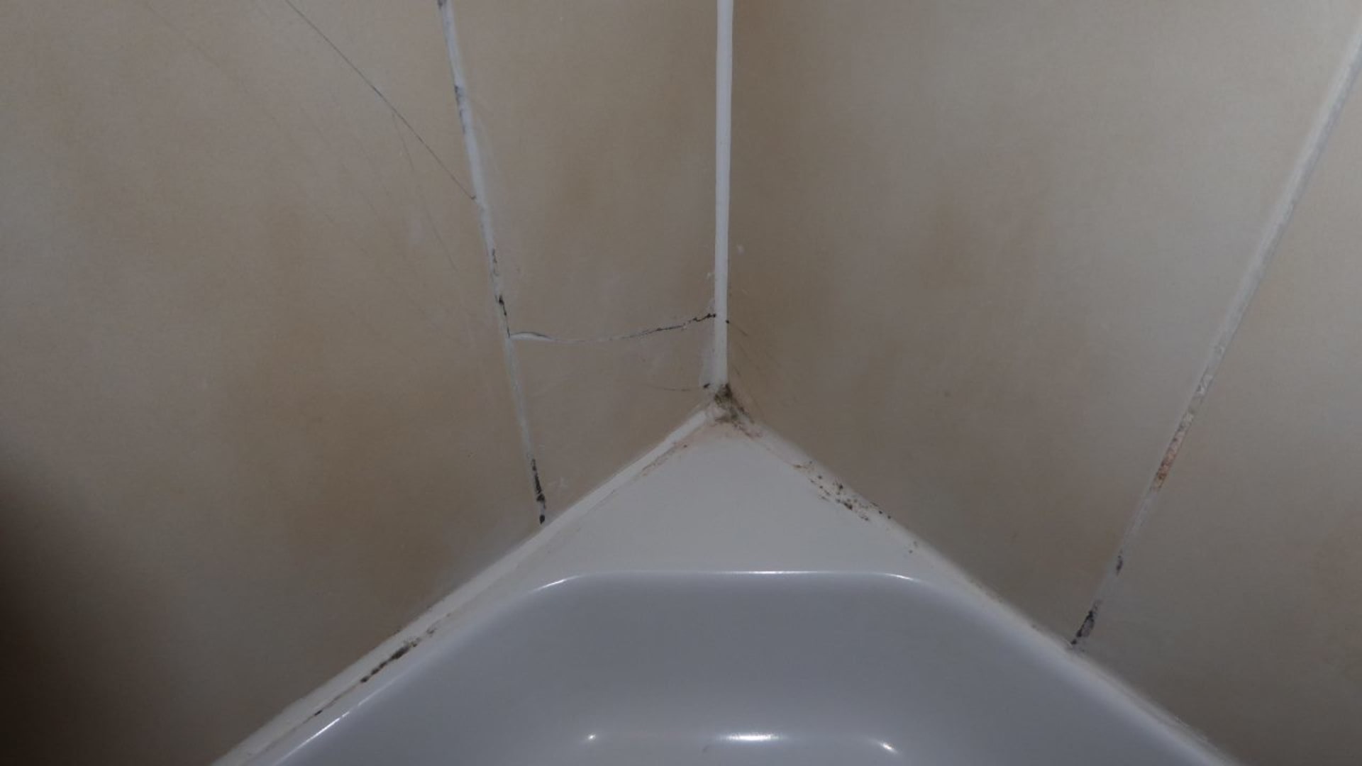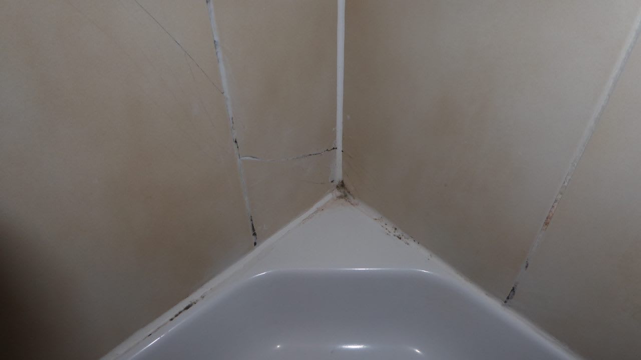 Deutliche Schimmelspuren in der Duschecke, vor dem ersten Benützen!