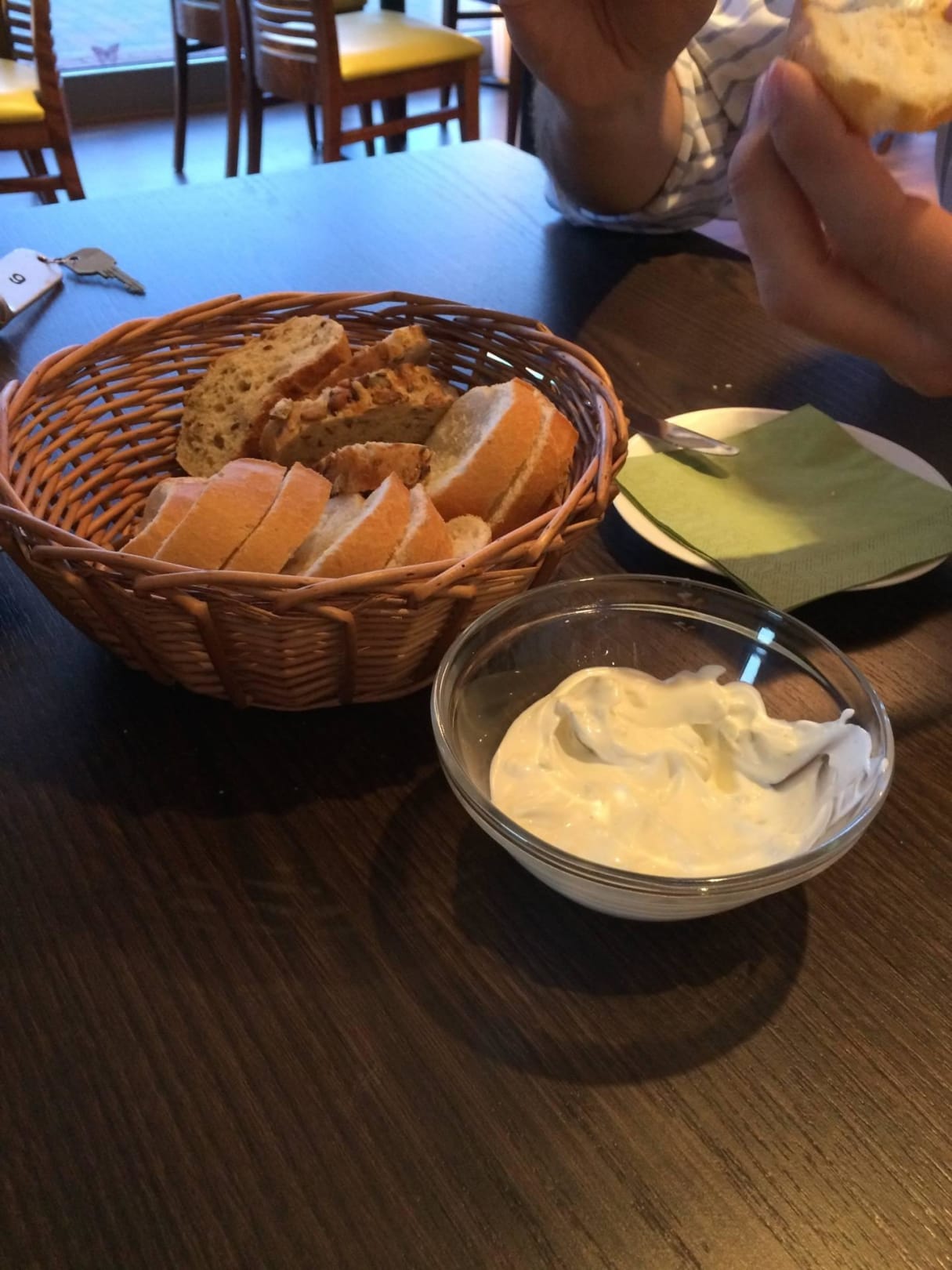 Brot mit schmackhaftem Aufstrich vor dem Abendesse
