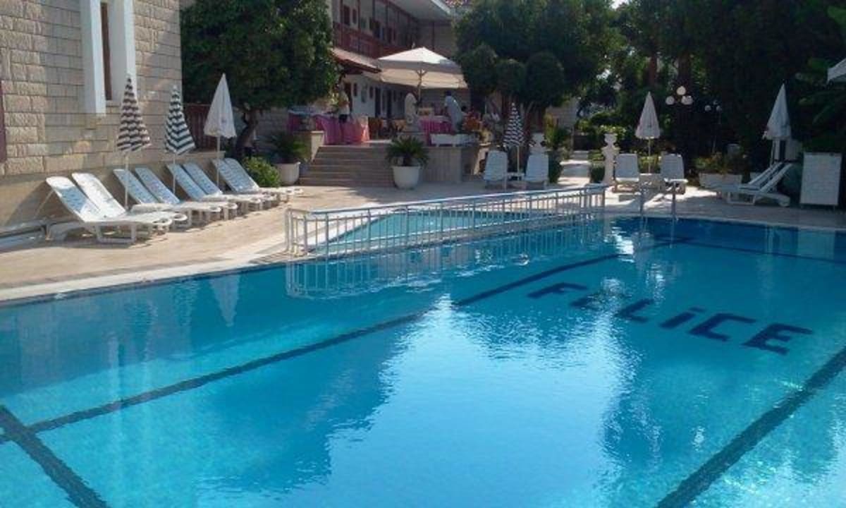 Pool, Blickrichtung SpeiseterrasseHinter dem Pool, 3-4 Stufen herauf befindet sich die unüberdachte Speiseterrasse.