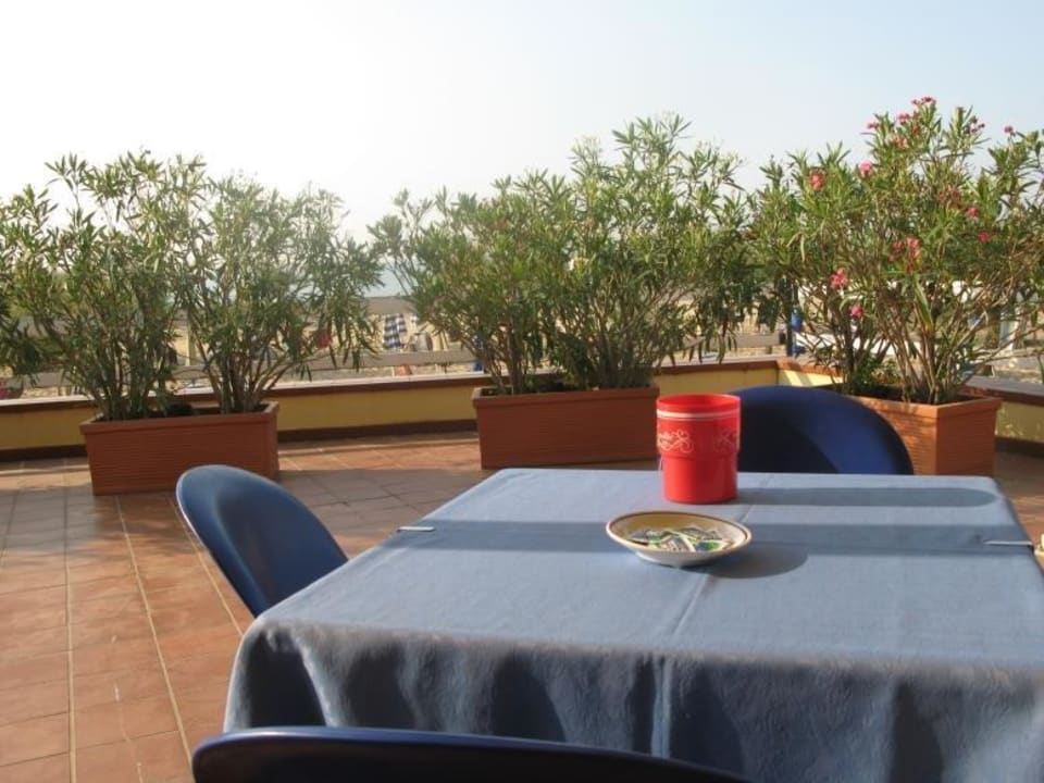 Frühstück auch auf der TerrasseFrische aufgeschnittene Salami und Schinken, Eier, Käse, Müsli, Cornflakes, 2 Sorten Brötchen und Saft, Vollkornbrot, diverse Marmeladen, Butter, Schokocreme, verschiedene Joghurts, Kakao, Kaffee, Tee, frisches Obst und frisch gebackene Crosaints