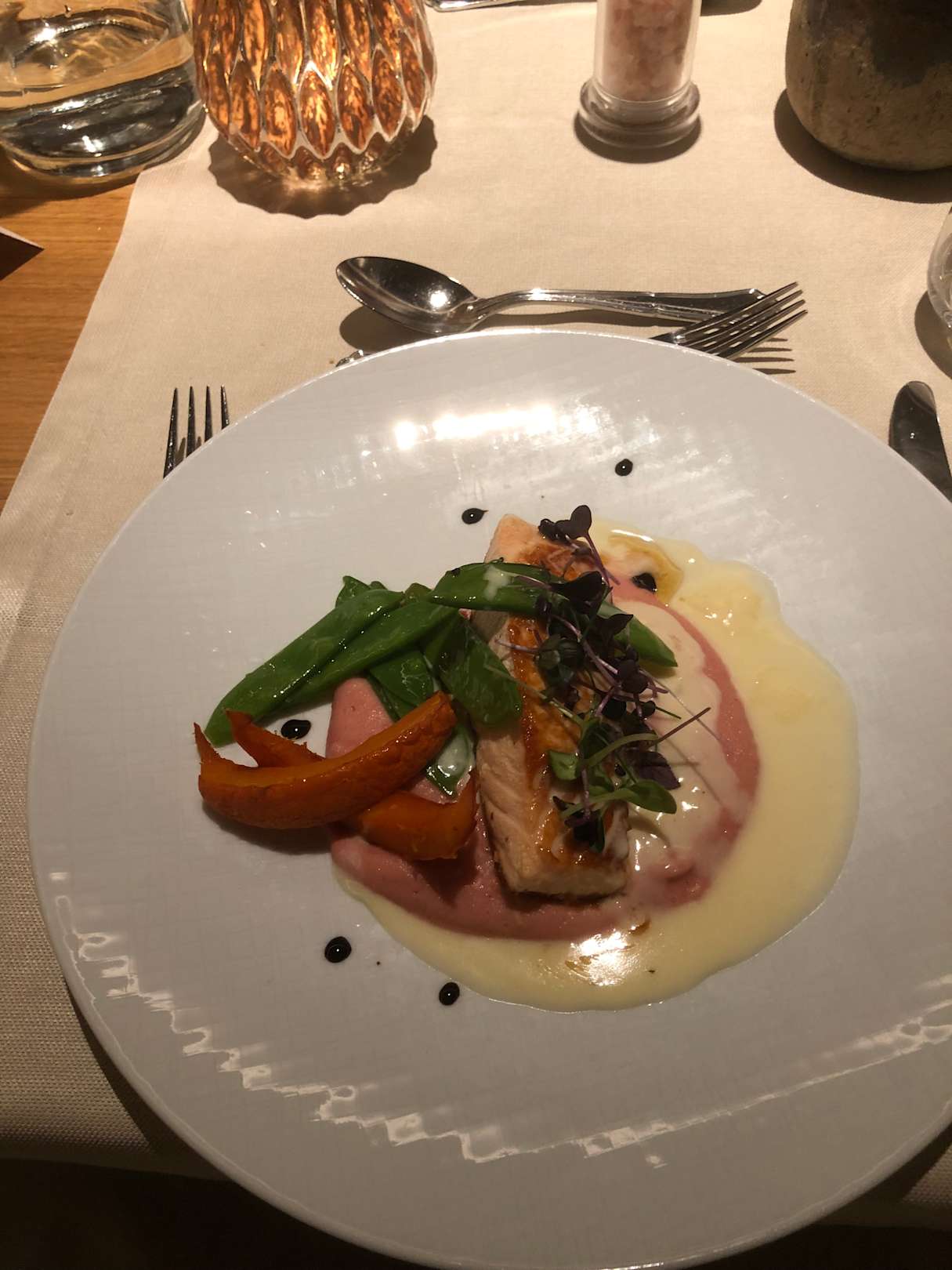 lachs mit kürbis und rotebeeteschaum