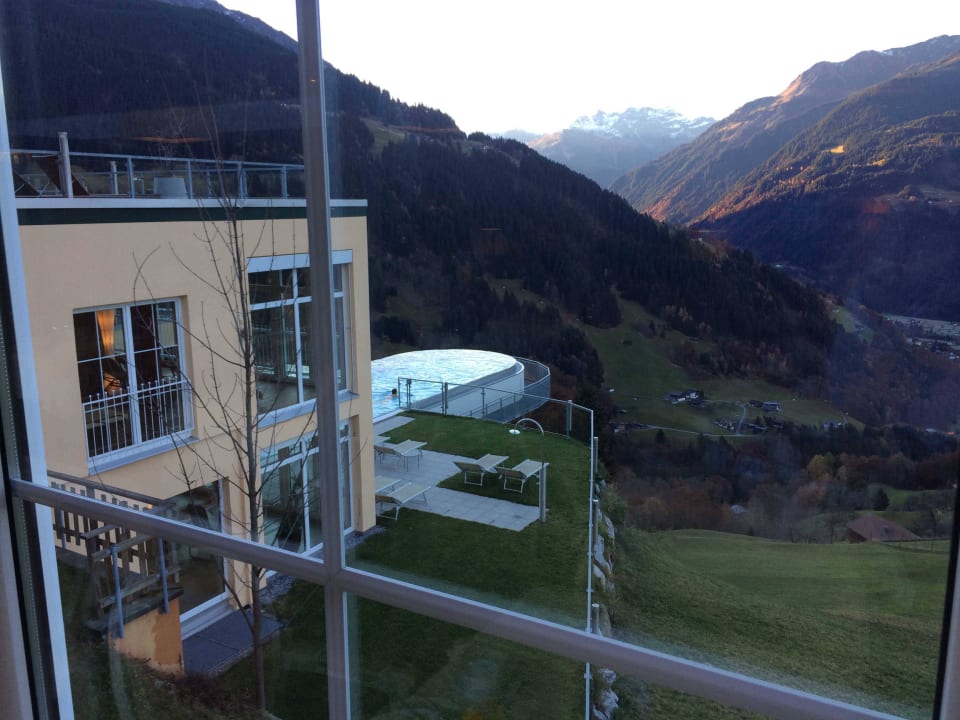 Blick vom Liegenbereich zum Pool
